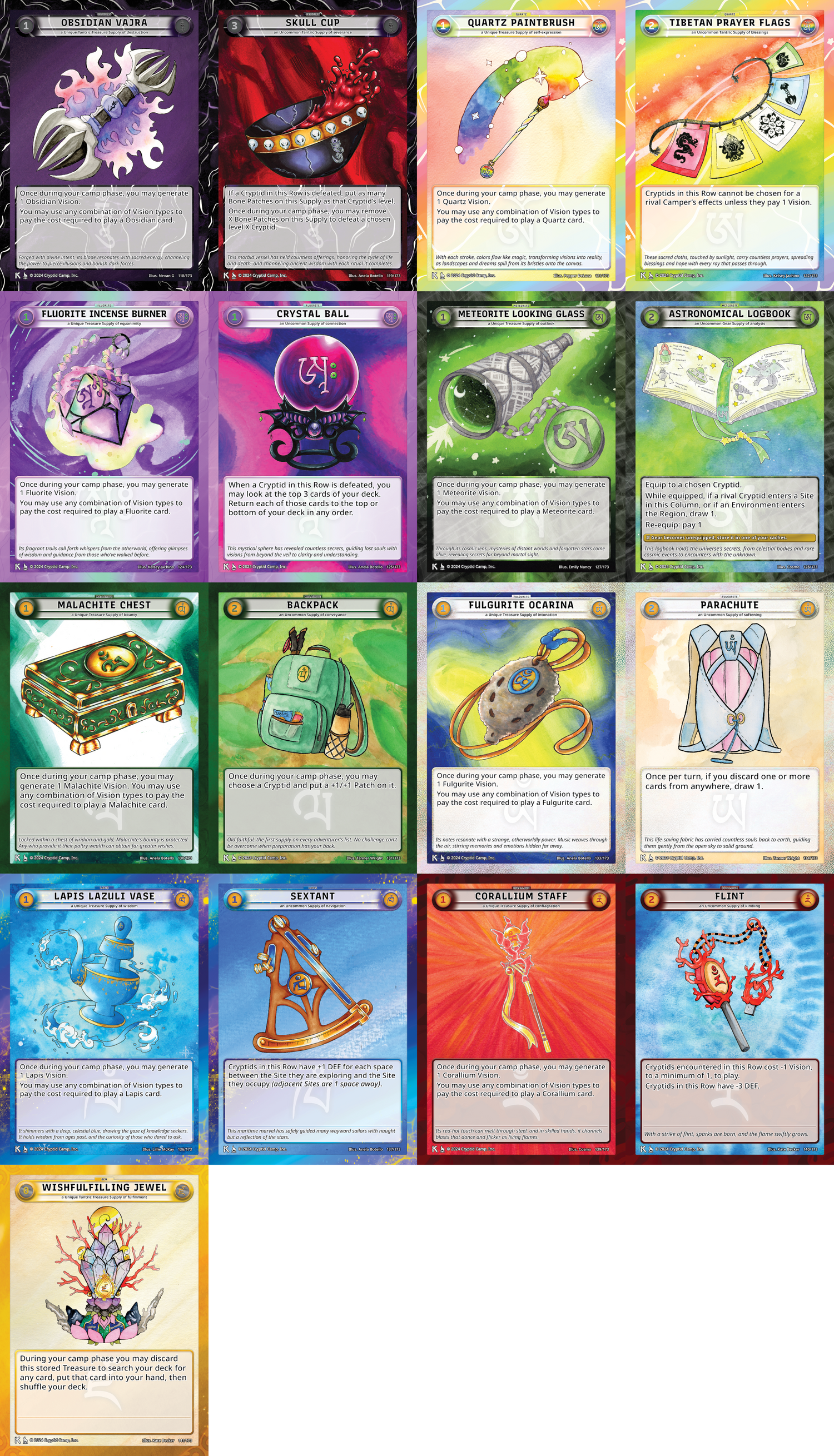 Gameplay: The Quartz Campers ally with beings born from the light of imagination, seeking to pacify any aggressive Cryptids they encounter on the Trails. In the light of Day, Quartz Cryptids possess the ability to search for or recover precious resources. By harnessing their wishes to help others, Quartz Campers can protect their Cryptids and Lanterns more effectively than those of other Cabins.
