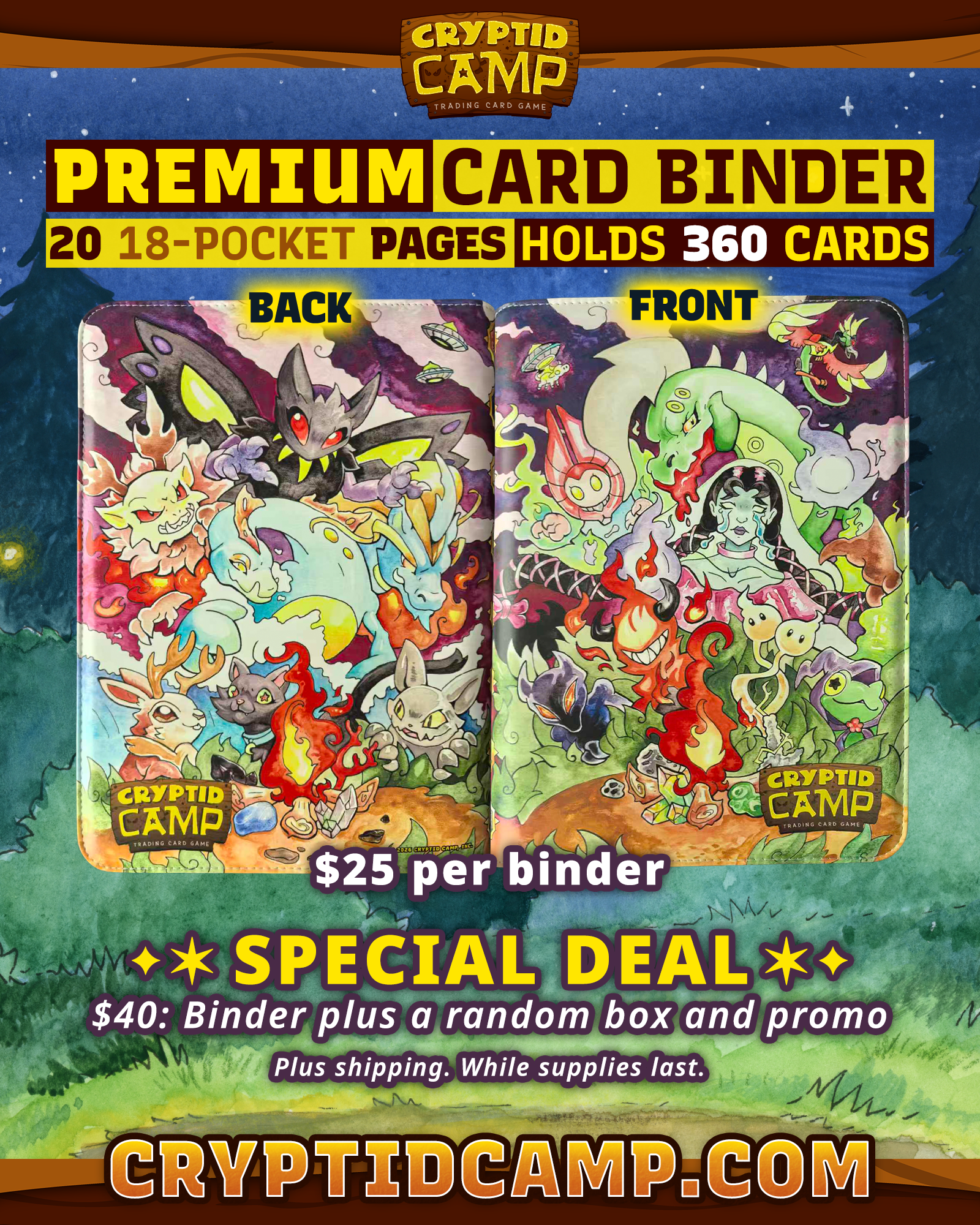 $40 Bundle – Premium Binder plus a random Cryptid Camp mini set box and promo card